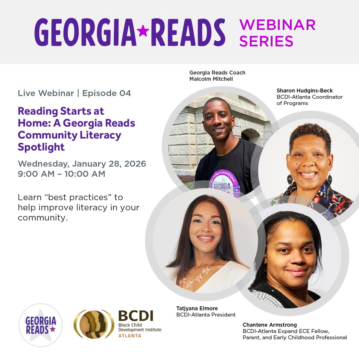 • Apply for the Georgia Reads Community Awards.  Applications will open on September 22, 2025. More information will be available on the website.